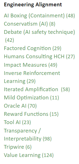 I have trouble imagining how you would get the Game Tree of Alignment exercise started. I would guess you’d take the common alignment approaches from Engineering Alignment under the AI Safety tag and then the next level would be why each of these don’t work and the next level how to patch them?