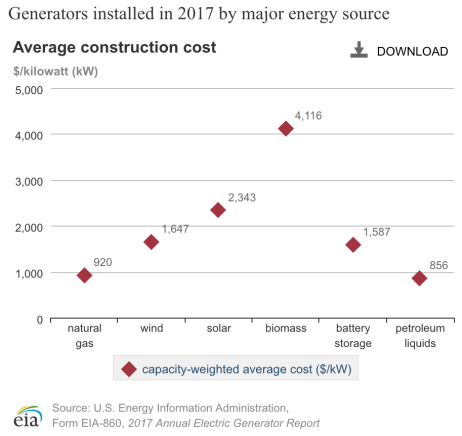 But in practice, the high up front construction cost — currently perhaps $4000-$5000/kW, roughly 5x the construction cost of the other types of power plant shown above — could be a concern, as could be the need to move beyond traditional Uranium light water reactors to get to full grid scale. Analyzing this is complex, as prices are changing and will change further with the advent of small modular reactors, and there will naturally be an ever-changing mixture of energy sources used and needed as renewables scale up to a significant fraction of the power grid.
