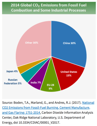 Cap and trade is another possibility, arguably fundamentally similar. Cap and trade has the advantage of directly setting a specific emissions limit. China has established something of a cap and trade system. It doesn’t look that stringent, yet: “The scheme set the initial carbon allowances to 3–5 billion tonnes per year.”