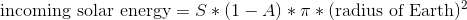 This last equation introduced the albedo A, which is the fraction of incoming solar energy reflected directly back without being absorbed, and the incoming solar flux S from the sun.