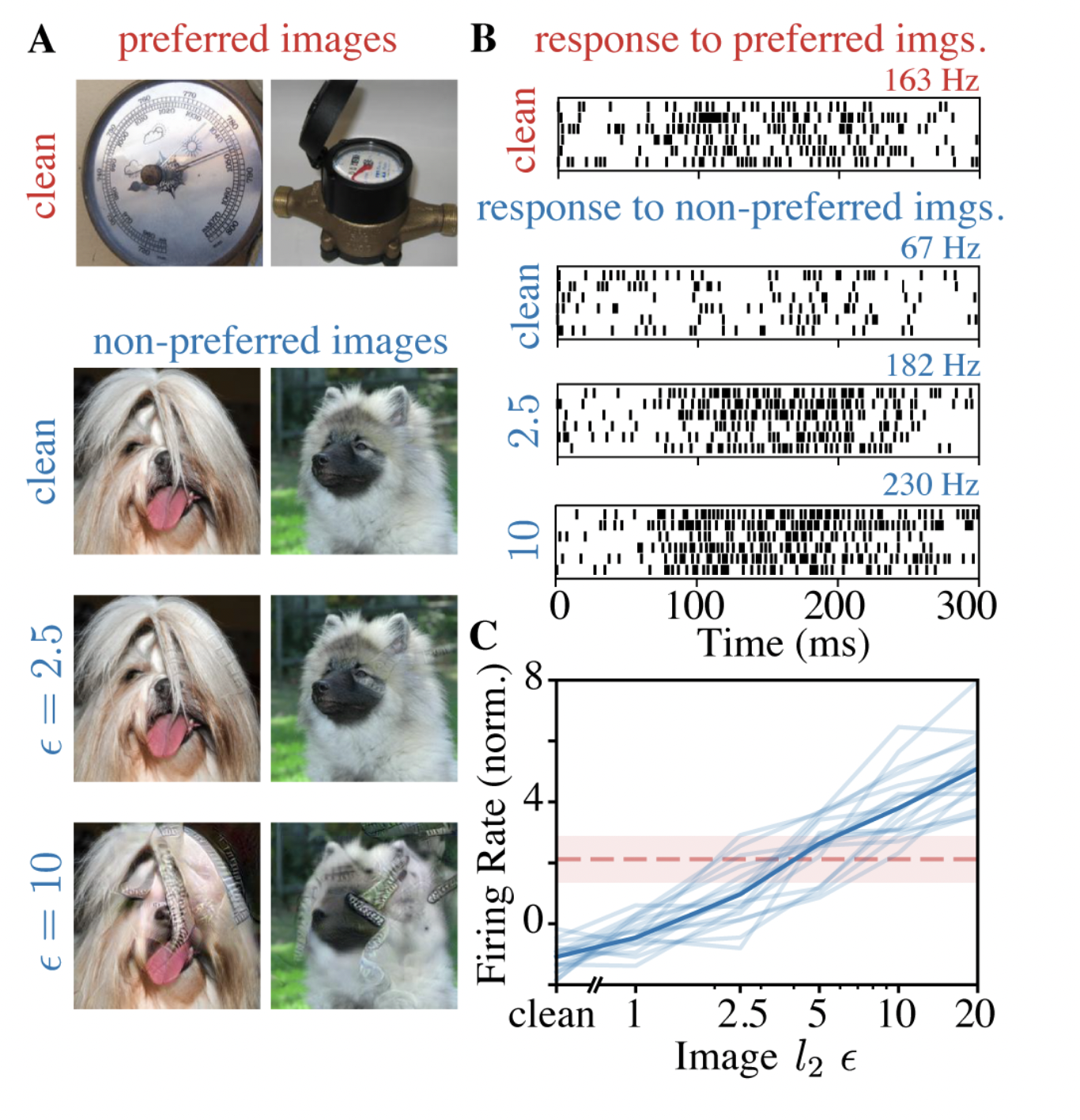 The relevant finding from the paper: neurons from a monkey’s inferior temporal cortex are about as vulnerable to being misled by worst-case, adversarially-selected input as are artificial neurons from a ResNet that’s been trained on adversarial examples. In fact, according to Figure 1 from the paper, the artificial neurons were actually more resistant to adversarial perturbations than the monkey’s neurons.