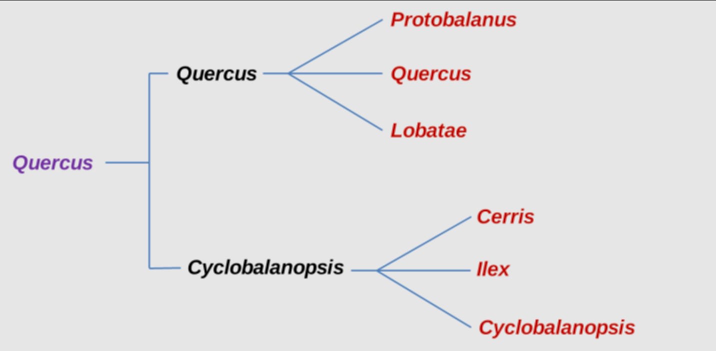 The most sophisticated version of this argument is phylogenetic. It states that “species” can be defined as “tips” in phylogenetic trees. This argument goes that if drew a family tree of North American red oaks, the Northern Red Oak and the Black Oak would each occupy their own distinct tip of the tree. Ergo, they are species.