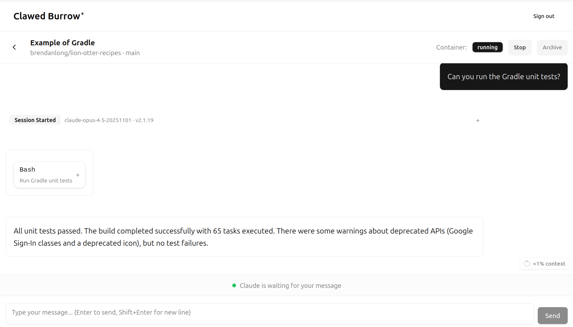 For additional safety, you can run Clawed Abode as an unprivileged user separate from your normal user account. You can sandbox this even further with systemd but I think realistically the worst thing an attacker could convince Claude to do is exfiltrate files, which you can prevent by ensuring Claude can’t read your normal user’s files.