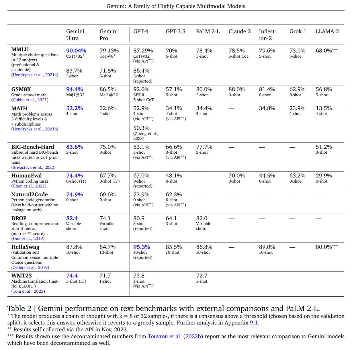 So the catch with MMLU is that Gemini Ultra gets more improvement from CoT@32, where GPT-4 did not improve much, but Ultra’s baseline performance on 5-shot is worse than GPT-4’s.