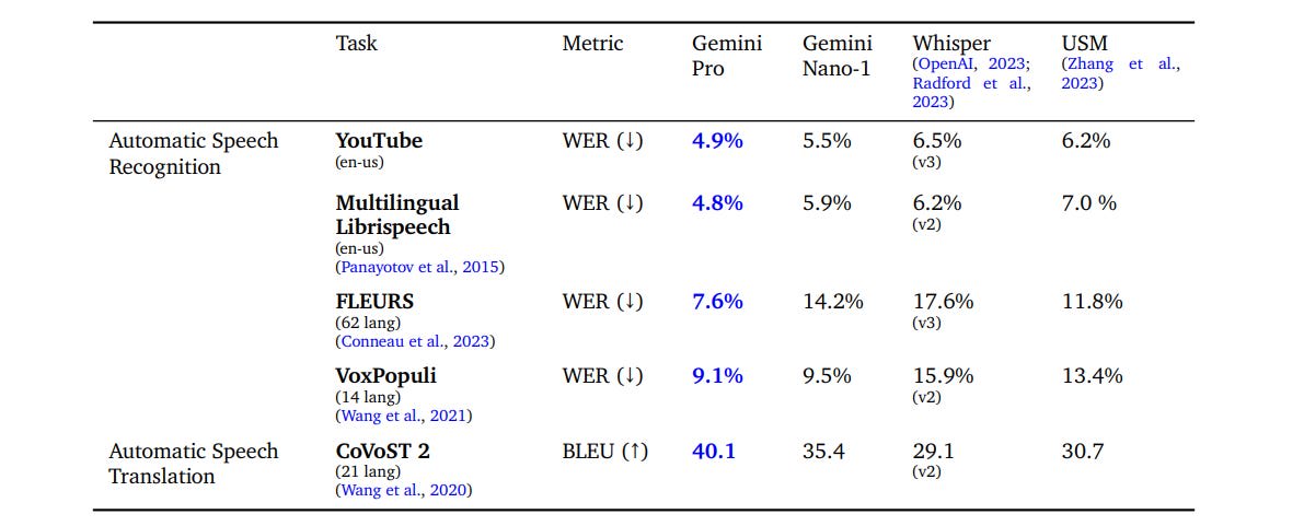 One place we do see impressive claimed improvement is speech recognition. Note that this is only Gemini Pro, not Gemini Ultra, which should do better.