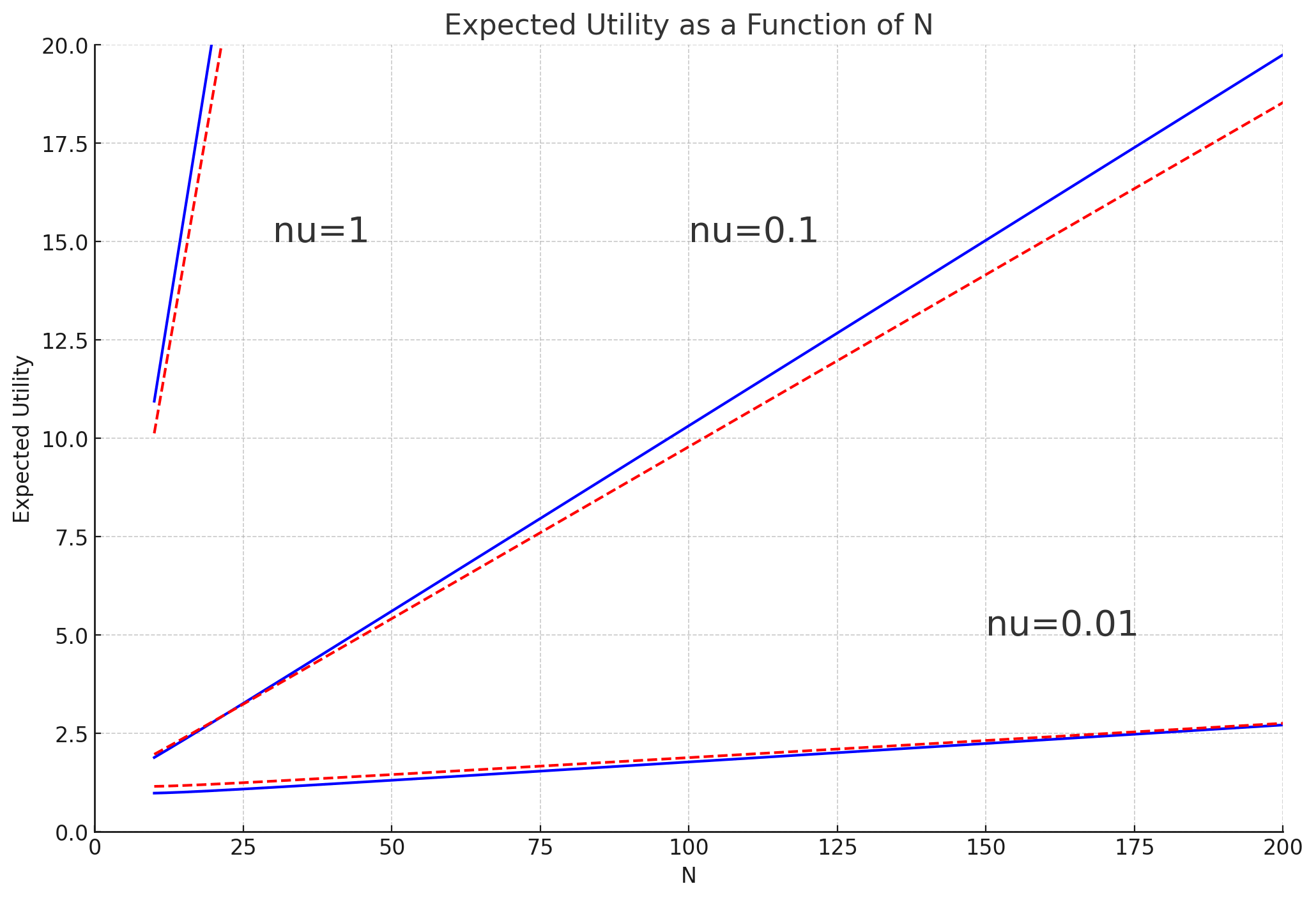 Great post! I hadn’t considered the fact that your decision was information, which feels obvious in retrospect. If someone is truly interested in this topic, it would be interesting to create a calculator where they can adjust nu, their posterior, and N.