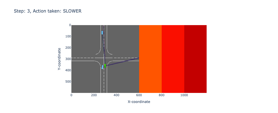 Frame rendered from the scene at the time step when agent decides to slow down near the intersection.