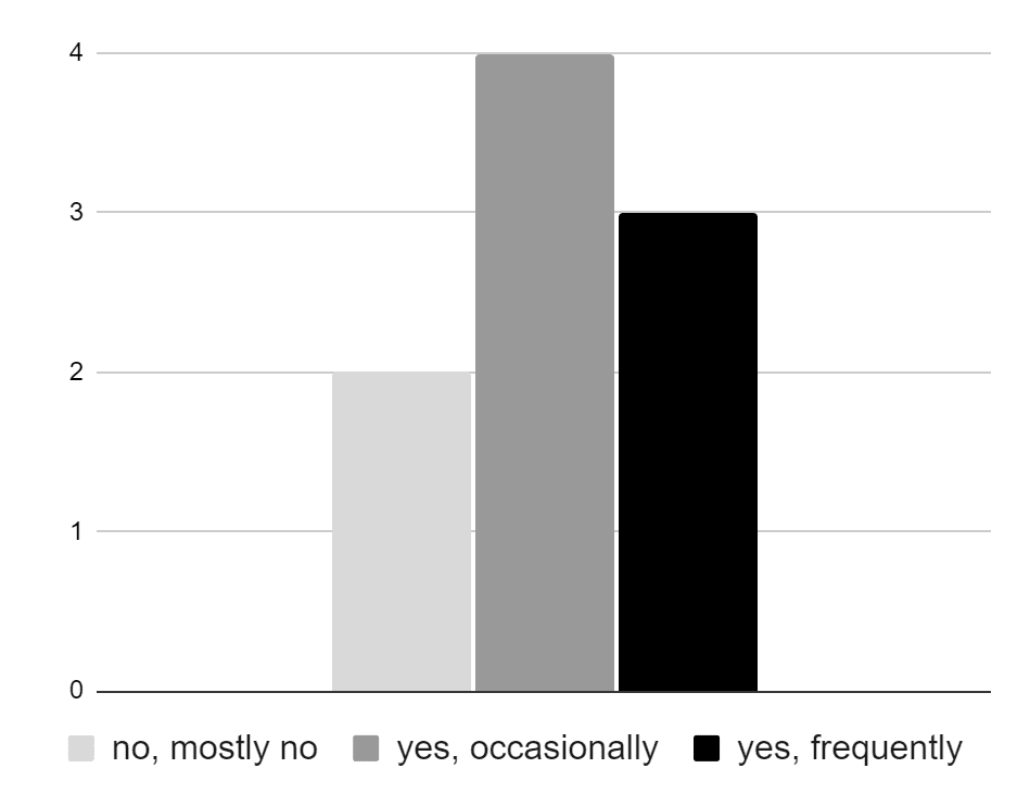 Clearly, LLMs have the potential to benefit a number of tasks that are carried out in biosecurity-related professions and augment some biosecurity-relevant skills. However, LLMs are recent technological developments (OpenAI’s ChatGPT and Google’s Bard/Gemini were released 14 and 9 months ago, as of the time of writing, respectively) and far from having reached maturity. We thus wondered about their current use among biosecurity professionals. The majority (7/9) of interviewees do use LLMs in their work, and a third do so frequently (Fig. 1)