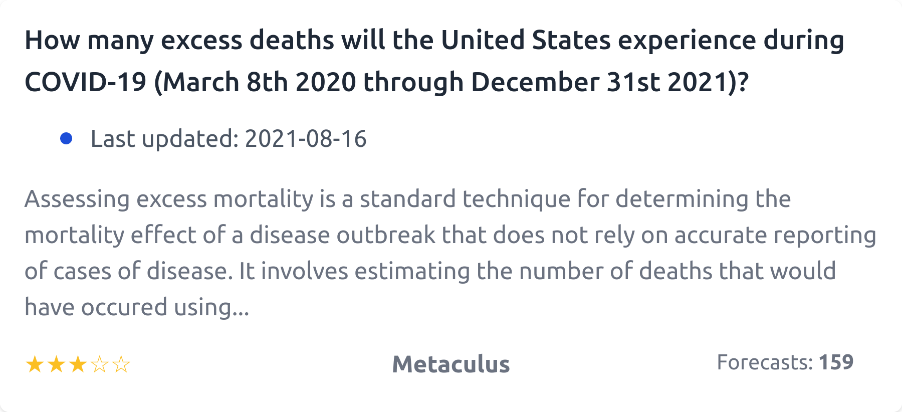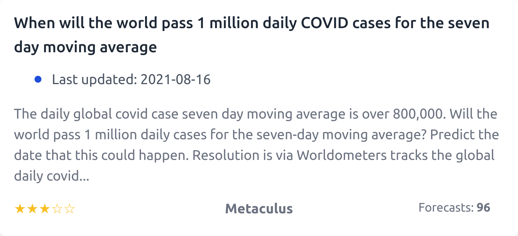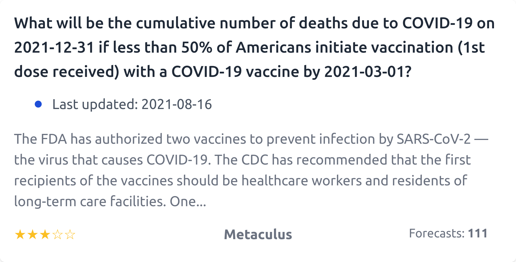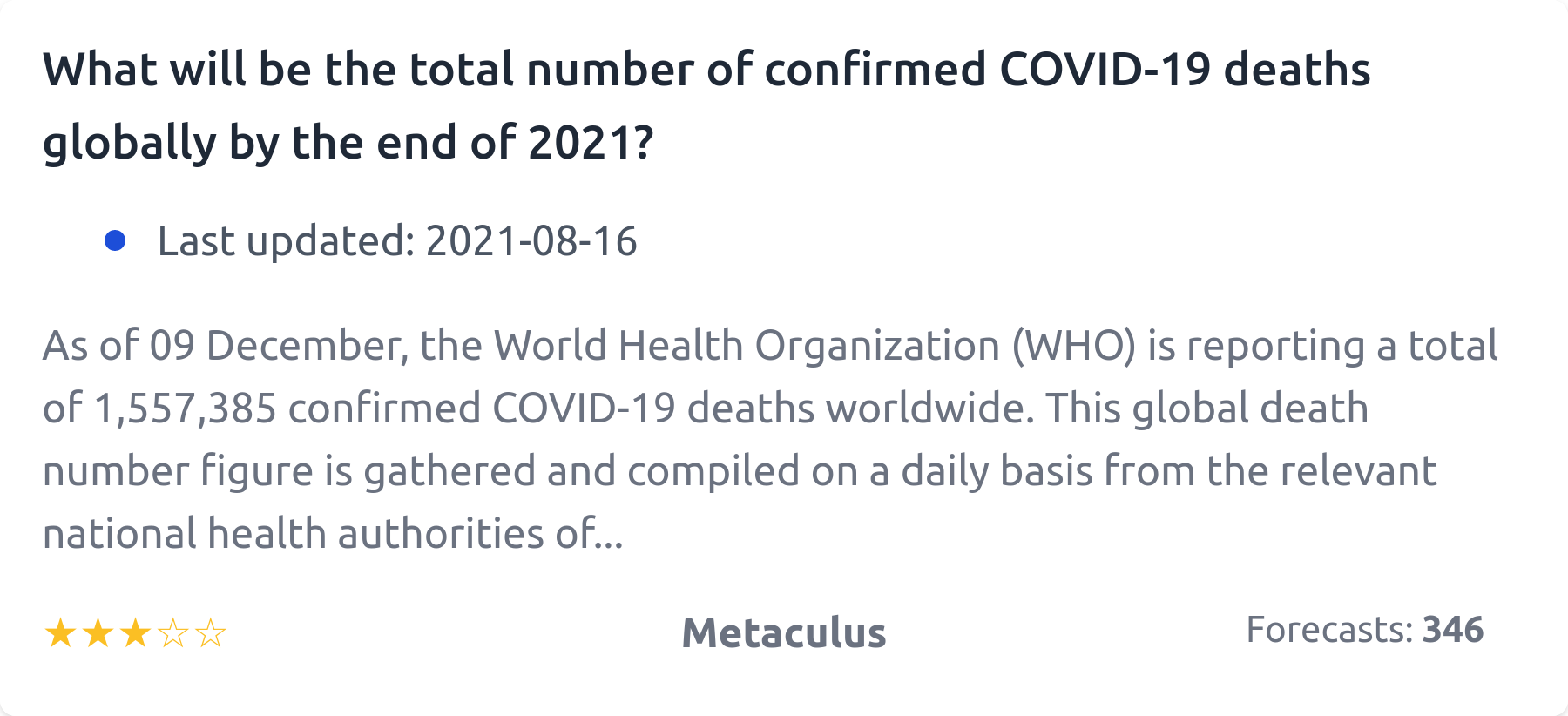 My hope is that after reading this post, other people might do interesting analytical work on top of these predictions, or, more likely, use Metaforecast to capture predictions and include them in their posts when analyzing other topics.