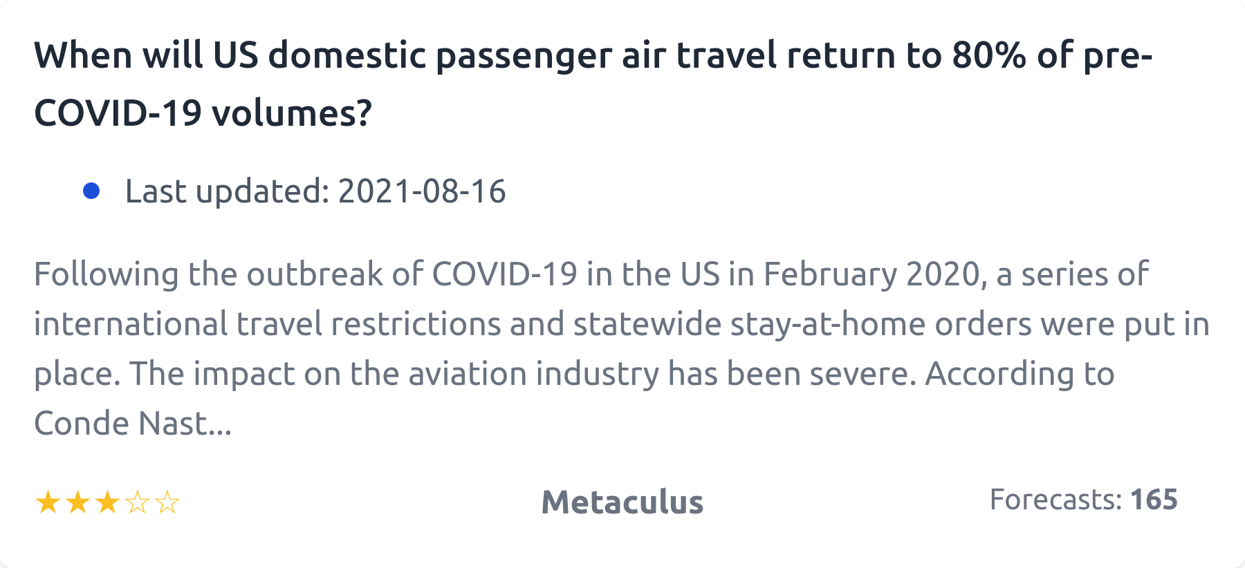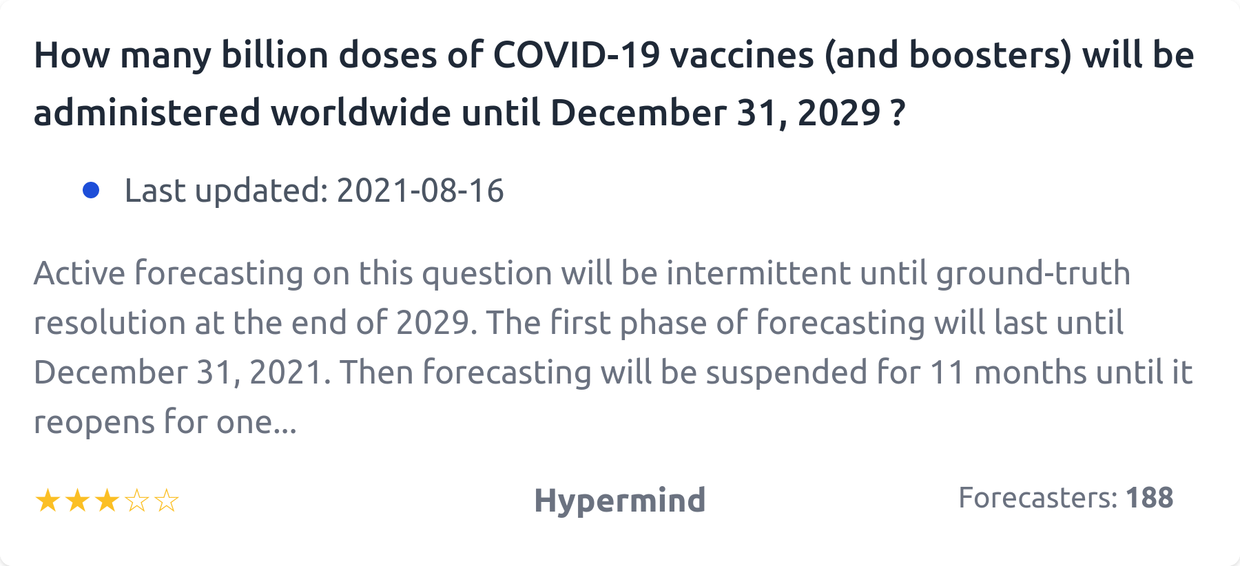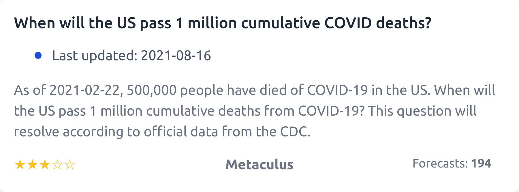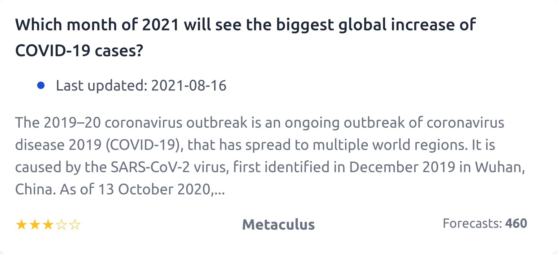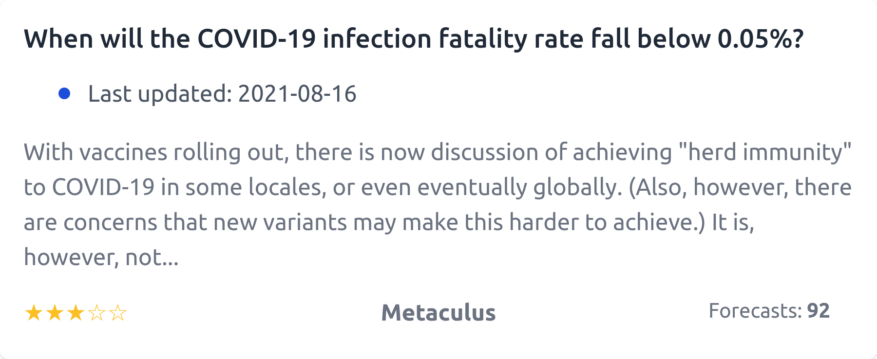 My hope is that after reading this post, other people might do interesting analytical work on top of these predictions, or, more likely, use Metaforecast to capture predictions and include them in their posts when analyzing other topics.