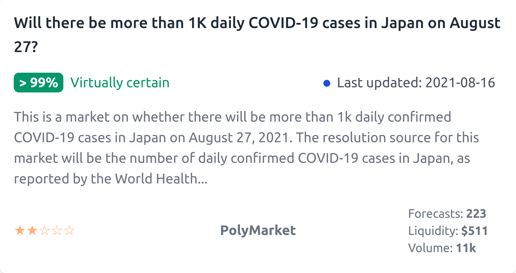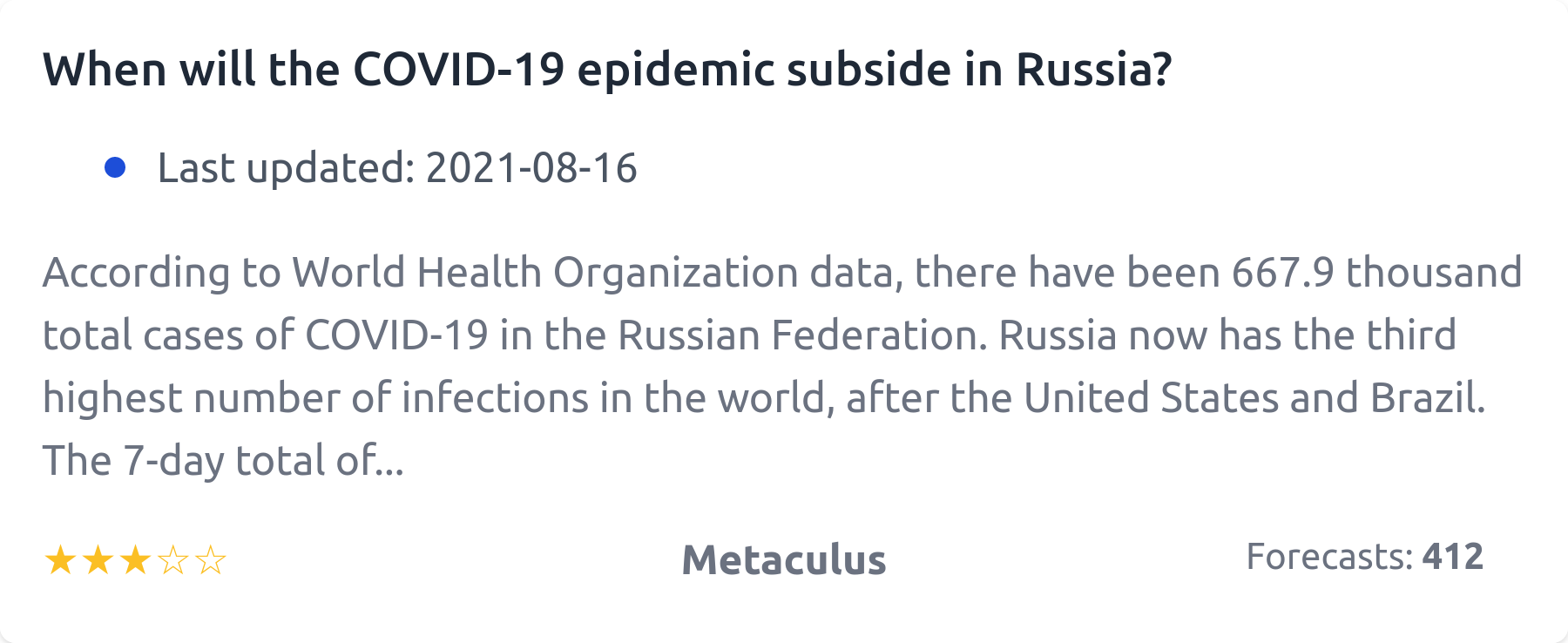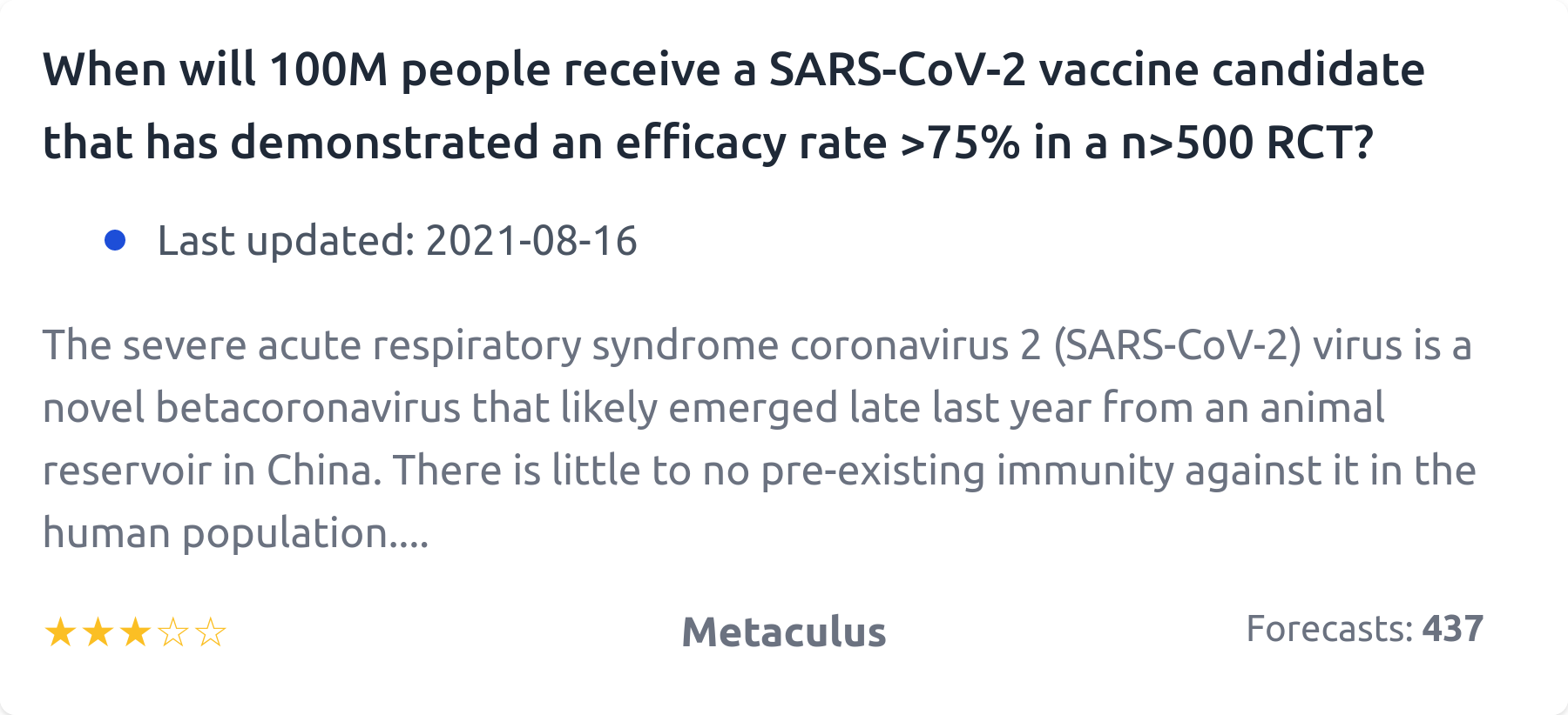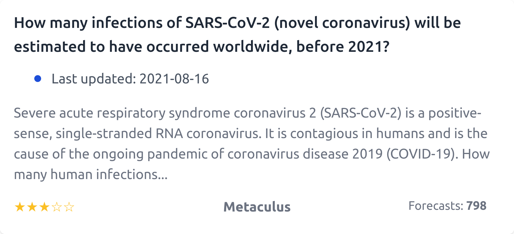 My hope is that after reading this post, other people might do interesting analytical work on top of these predictions, or, more likely, use Metaforecast to capture predictions and include them in their posts when analyzing other topics.