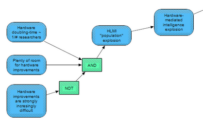 In this scenario, HLMI (doing hardware R&D) would cause an explosion in the amount of hardware, and thus an explosion in the “population” of HLMI (implying more HLMIs to perform hardware research, faster hardware gains, and so on). This phenomenon would require hardware improvements to scale with the number of hardware researchers (with this work being performed by HLMIs), for hardware improvements not to become strongly-increasingly difficult, and for there to be plenty of room for more hardware improvements. Such a pathway would allow, at least in principle, the capabilities of AI to explode even if the capability of any given AI (with a fixed amount of hardware) did not explode.