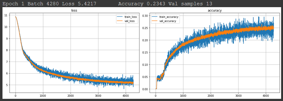 Training history for a basic 2 layer attention-only decoder with each decoder layer having 12 attention heads and an mlp layer.