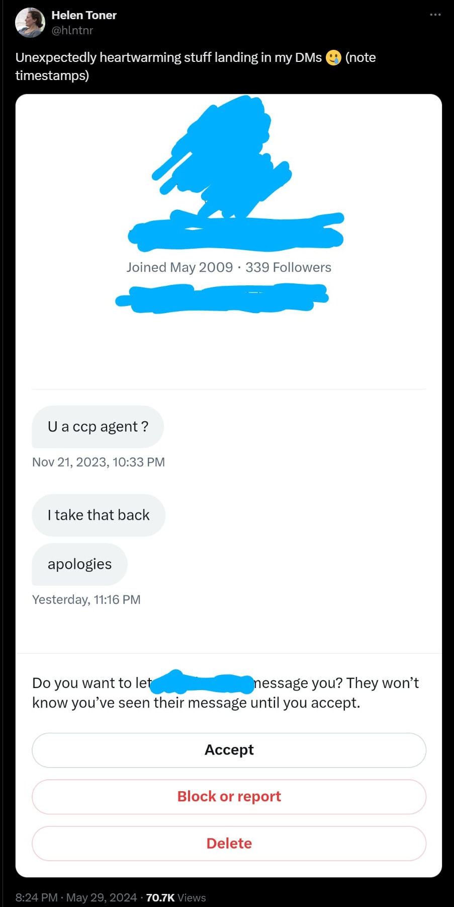 HR responded by saying that worrying about CCP espionage was racist and unconstructive. “I got an official HR warning for sharing the memo with the board.”