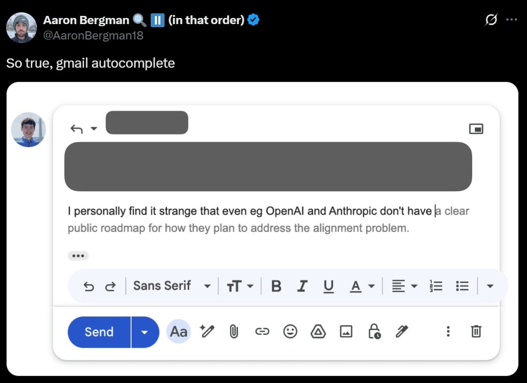 This is the correct accusation against Anthropic. They’re not trying to do regulatory capture, but they very much are trying to point out that future frontier AI will pose existential risk and otherwise be a grave threat, and trying to be the ones to build it first. They have a story here, but yeah, hmm.