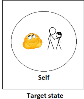 Alternatively, we can think of a goal which intrinsically requires self-reference. For example, I might be feeling sad, and think that I want to feel happy instead. In this case, both the initial state and the target state are defined in terms of what I feel, so in order to measure my progress, I need to track a reference to myself.