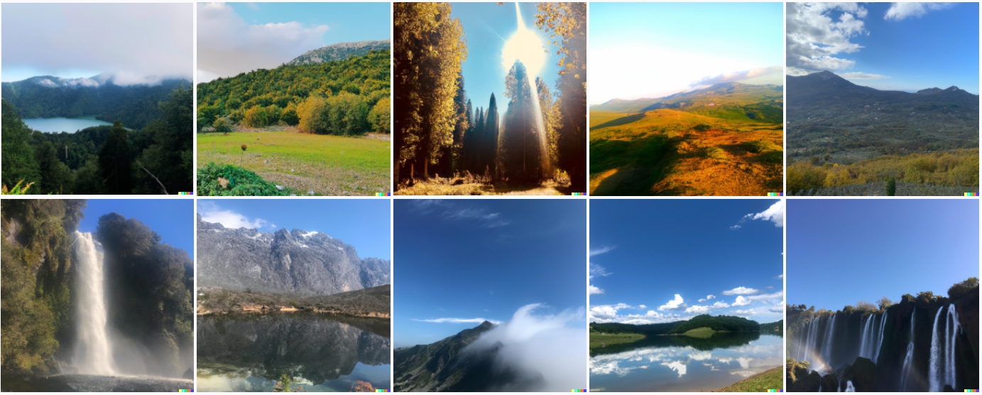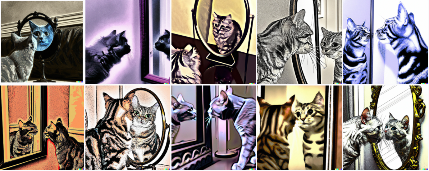 Here’s how it works: you put in a description of a picture, and it thinks for ~20 seconds and then produces 10 photos that are variations on that description. The diversity varies quite a bit depending on the prompt.