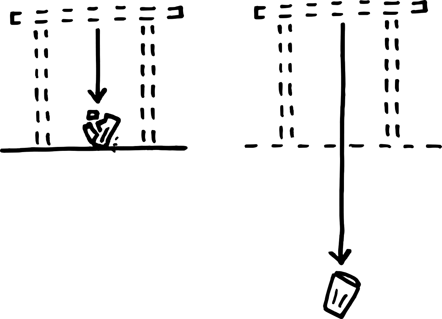 Okay, so. “The cup falls, without the table (and this is usually bad).” Call that Puzzle Piece #1.