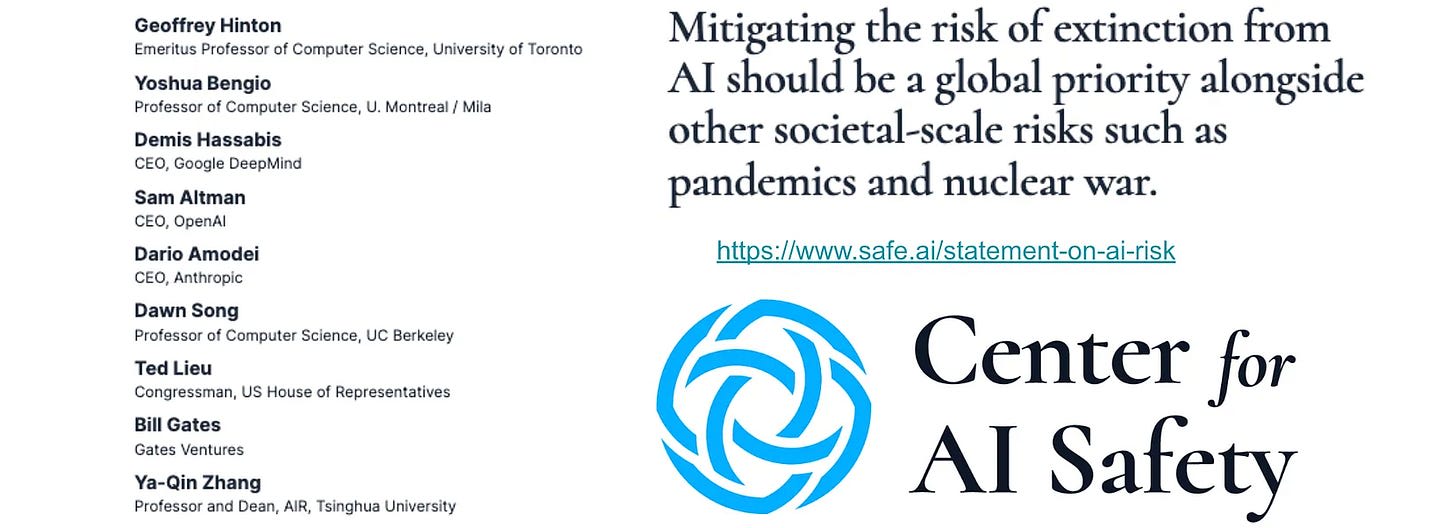 The media emphasized the AI CEOs’ signatures, misleading many into thinking of this as corporate PR, but over 100 AI professors also signed, including the two most cited scientists of all time who helped pioneer the techniques powering modern AI.