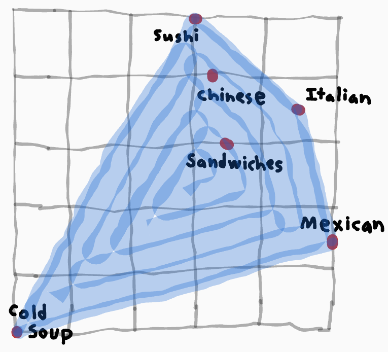 Although, there’s something off about setting up the problem like this. There’s no term for intensity of preferences! Someone who cared very little about food would have their preferences rank just as strongly as someone who had strong restaurant opinions!