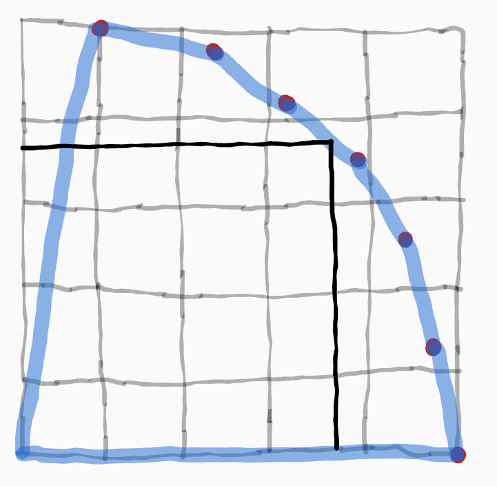 Pretty simple, right? It’s the only way of picking a point that fits all three of our desiderata, and also fulfills the extra property of monotonicity, which is basically saying that, if you move the Pareto-frontier points for a player up, they should get more utility.