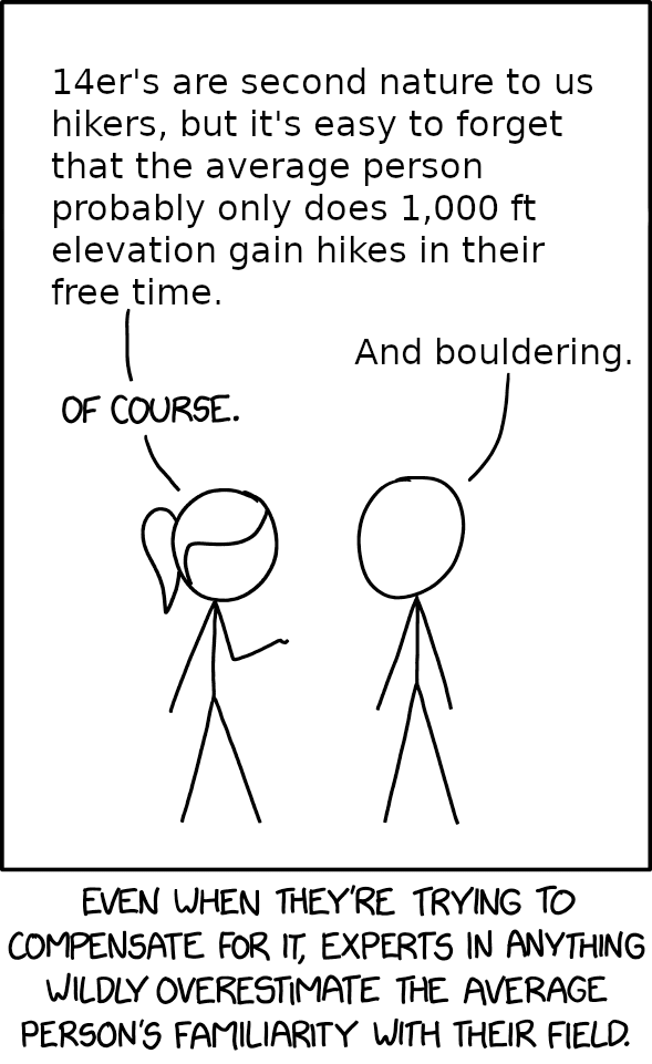 I’m even a terrible hiker. Half the people I hike with casually summit 14ers[2] on the weekend while I can barely do an easy 1,600 ft climb[3].