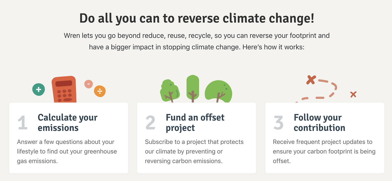 Wren charges about $24/month for the average American to “offset” their carbon footprint.