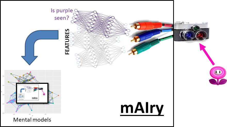 Now, mAIry has a collection of neural nets, dedicated to interpreting its input streams and detect the features of the world that is then fed to its mental models. So we could imagine the setup as follows: