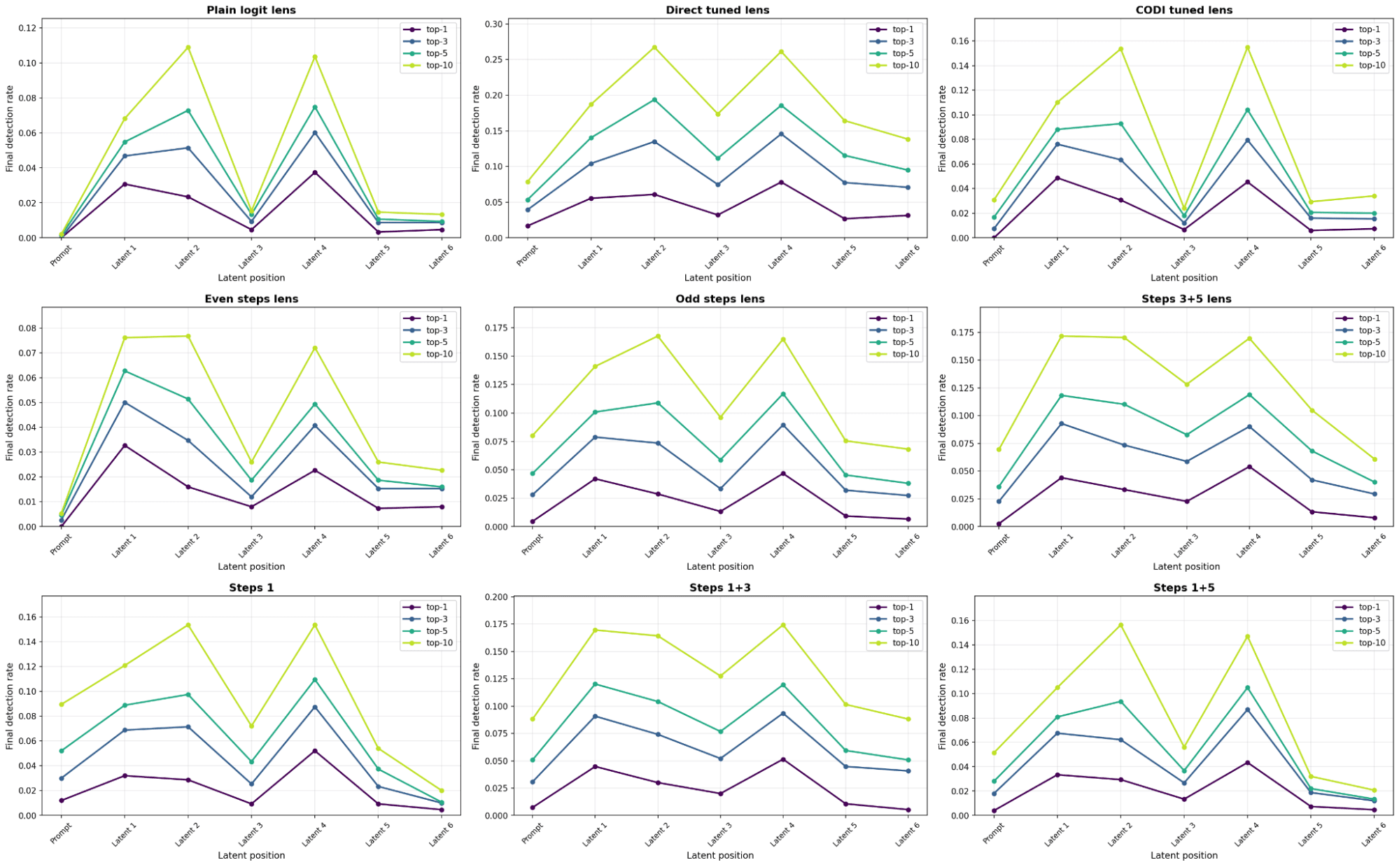 I tried looking at the intermediate answer detection across different topk values from 1 − 10 as maybe certain latents might have a higher answer detection rate because of the specific topk value.