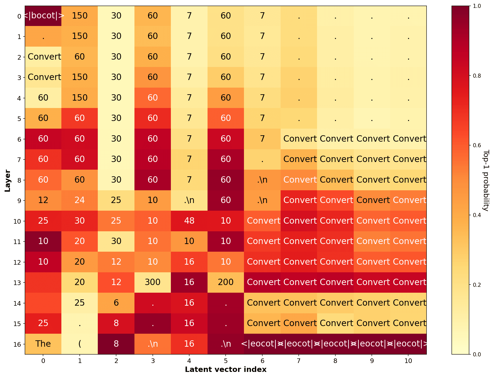 When looking at tuned logit lens using latent 1 a interesting token appeared Convert