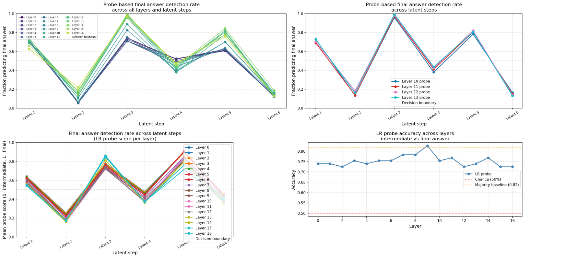 “Note that the dataset had more intermediate labeled (0) samples than final answer samples (roughly 4:1 ratio), so probe accuracy should be interpreted with this imbalance in mind.”