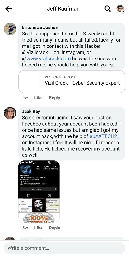 It sounds like there’s a business in helping (or scamming) people who’ve had their Facebook/Instagram accounts hacked?