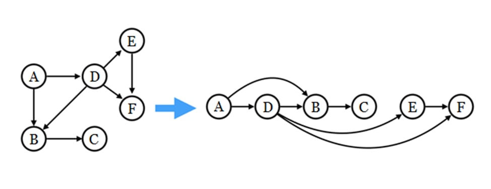 A → B, B → C, C → D — — — — — — — — — — A → D
