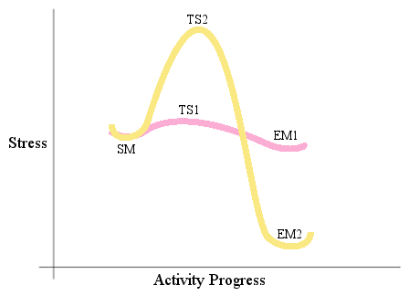 We can draw a similar diagram to illustrate how much stress we lose while completing a relaxing activity. Here’s what the abbreviations used in Figure 2 mean: