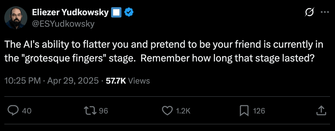 Way, way back in April, after an update briefly made ChatGPT go haywire and behave in a bizarre, sycophantic manner to users for a couple days, some people on the Internet were arguing about the potential for superhuman levels of persuasion: