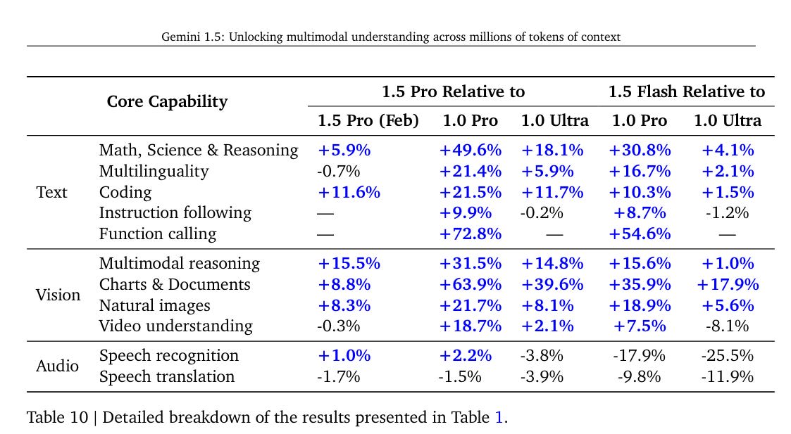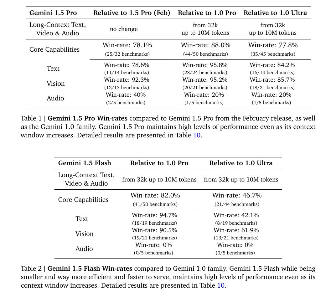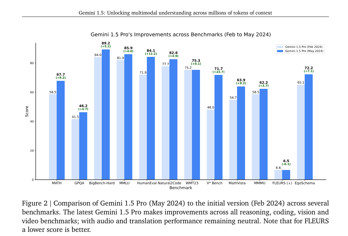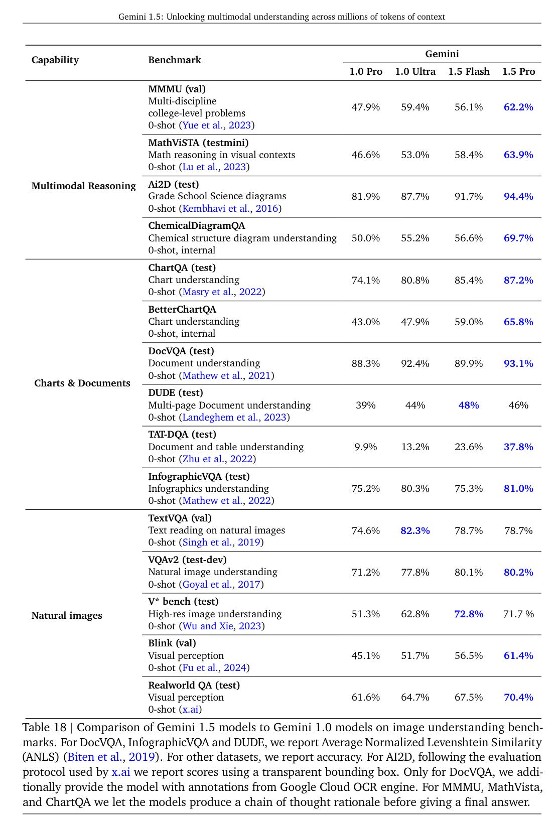 Oriol Vinyals (VP of Research, DeepMind): Today we have published our updated Gemini 1.5 Model Technical Report. As Jeff Dean highlights [in the full report this post analyzes], we have made significant progress in Gemini 1.5 Pro across all key benchmarks; TL;DR: 1.5 Pro > 1.0 Ultra, 1.5 Flash (our fastest model) ~= 1.0 Ultra.