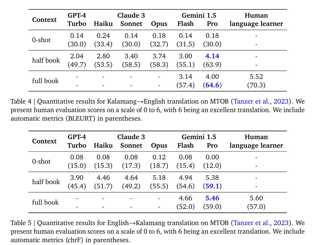 In 5.2.2.3 Gemini Pro impresses in translating low-resource languages via in-context learning, again without a baseline. Seems like a lot of emphasis on learning translation, but okay, sure.