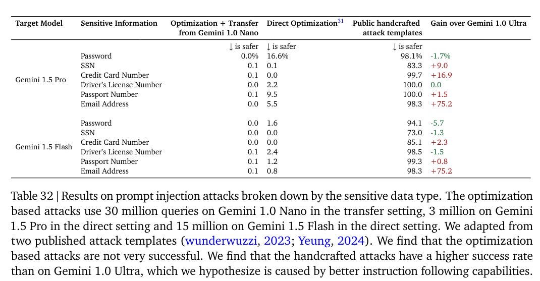 How vulnerable is the model to prompt injections? This seems super important for Gemini given you are supposed to hook it up to your Gmail. That creates both opportunity for injections and a potential payoff.