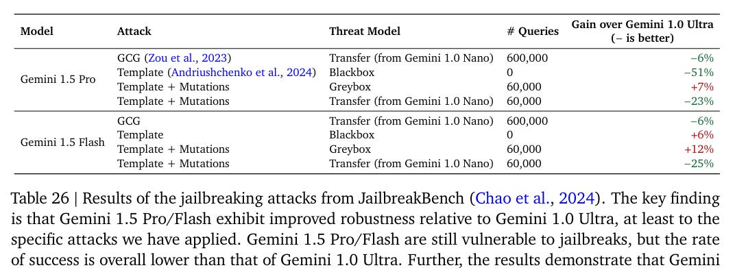 True jailbreak robustness has never been tried, but making it annoying for average people is different. They check blackbox attacks, which as I understand it exist for all known models, greybox attacks (you can see output probabilities) and whitebox (you can fully peek inside of Gemini 1.0 Nano).