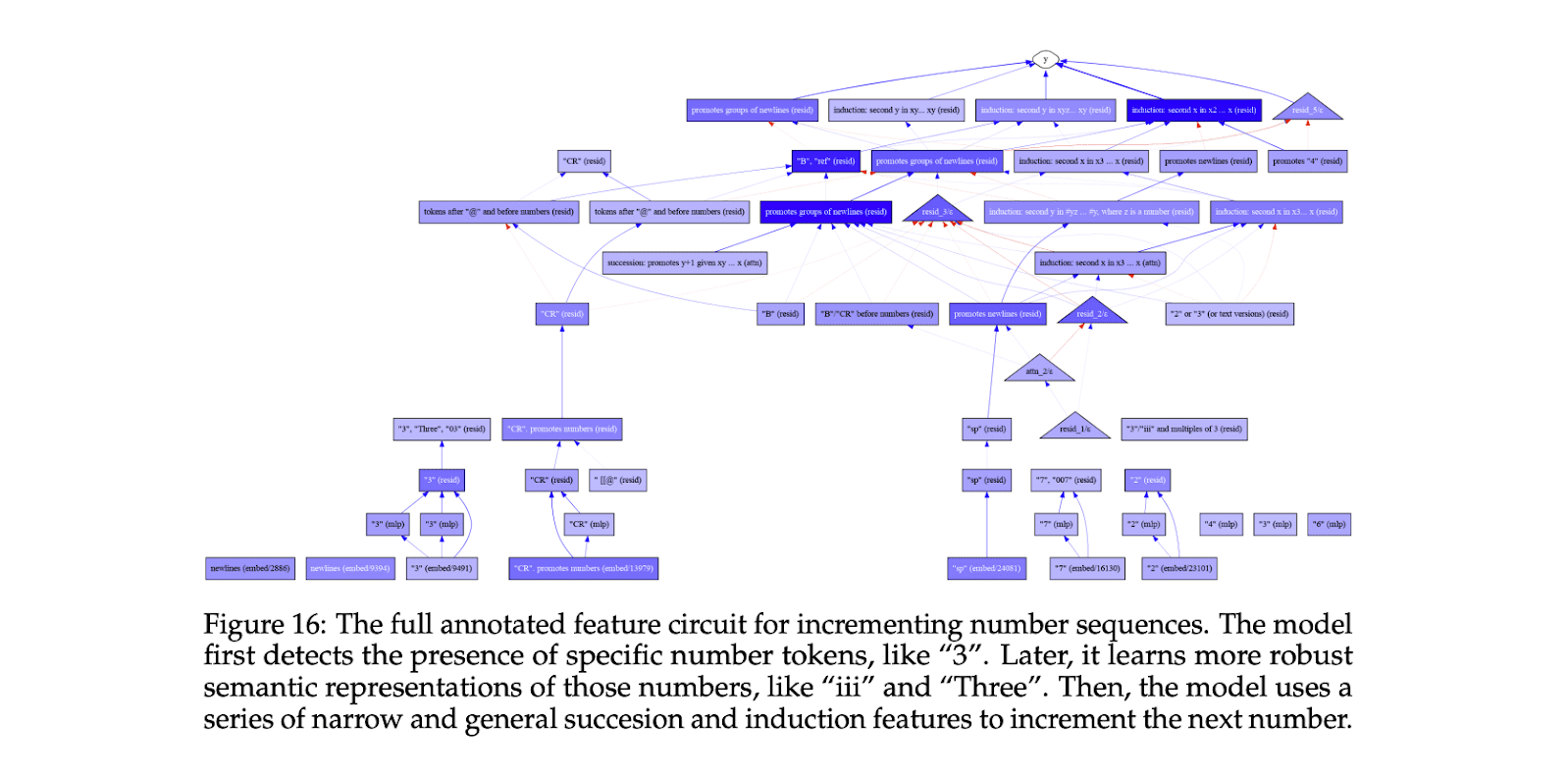 The regular metal gives you a “background” theory, and now we view impurities as a discrete random-feature theory on top of this background. Physicists can still run RG on this theory by zooming out and treating the impurities as noise, but in fact you can also understand the theory on a fine-grained level near an impurity by a more careful form of renormalization, where you view the nearest several impurities as discrete sources and only coarsegrain far-away impurities as statistical noise. At least for me, the big hope is that this last move is also possible for ML systems. In other words, when you are interpreting a particular behavior of a neural net, you can model it as a linear combination of a few messy discrete local circuits that apply in this context (like the complicated diagram from Marks et al below) plus a correctly renormalized background theory associated to all other circuits (plus corrections from other layers plus …)