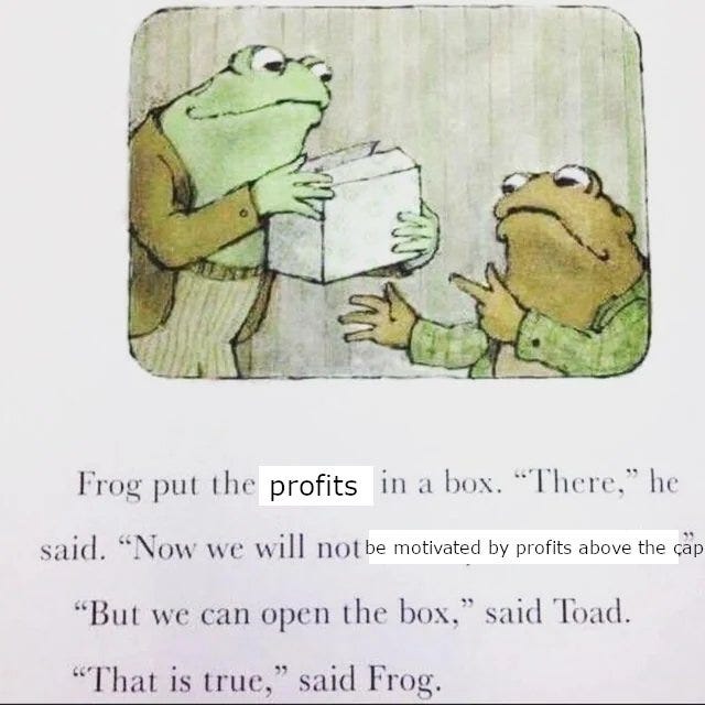 So, strange as it sounds, this could turn out to be an even more clever way for Sam and profit-motivated investors to get what they wanted. Profit caps would be gone and profit-motivated investors would have much more influence.