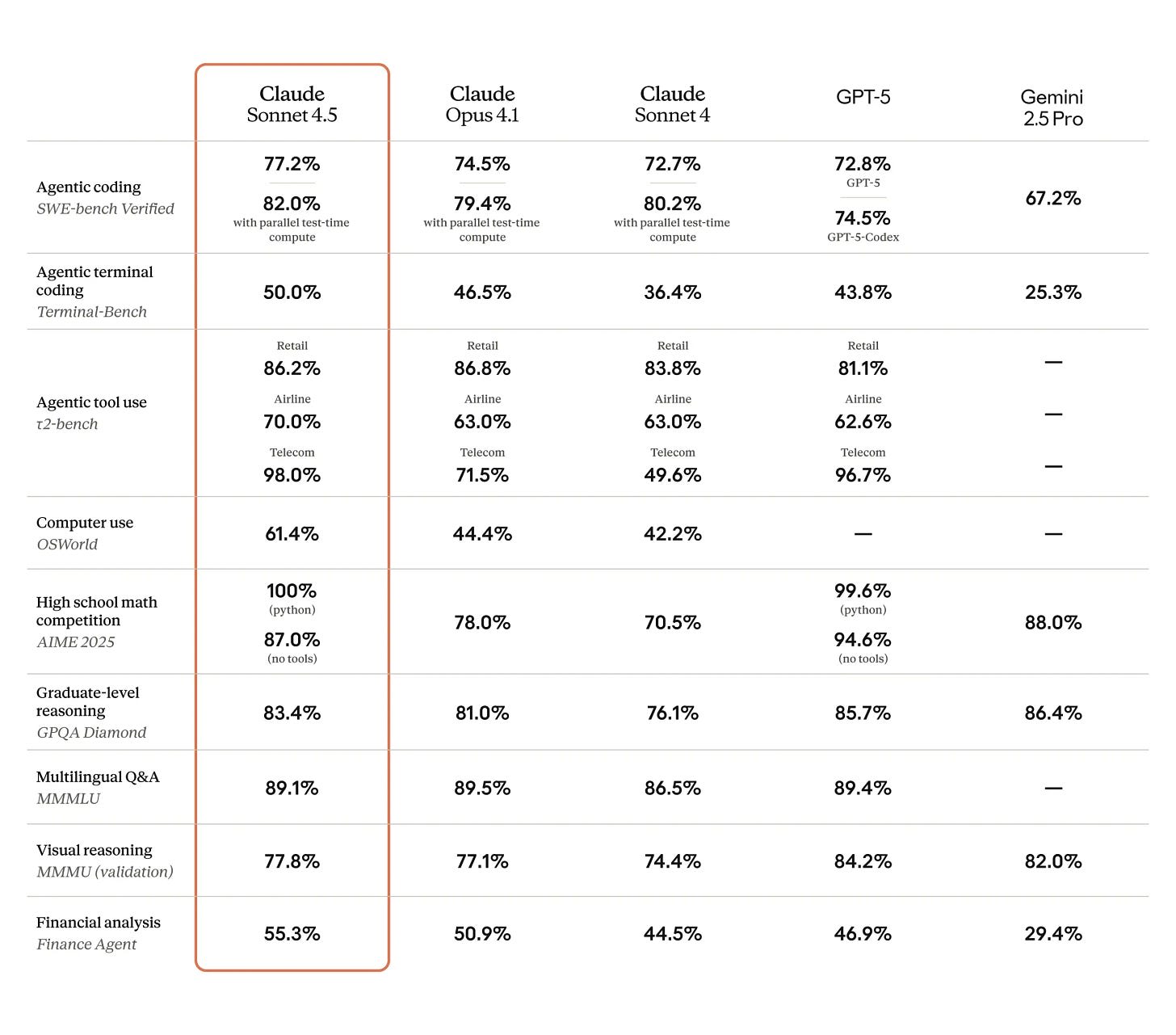 Here is Anthropic’s official headline announcement of Sonnet 4.5. This is big talk, calling it the best model in the world for coding, computer use and complex agent tasks.