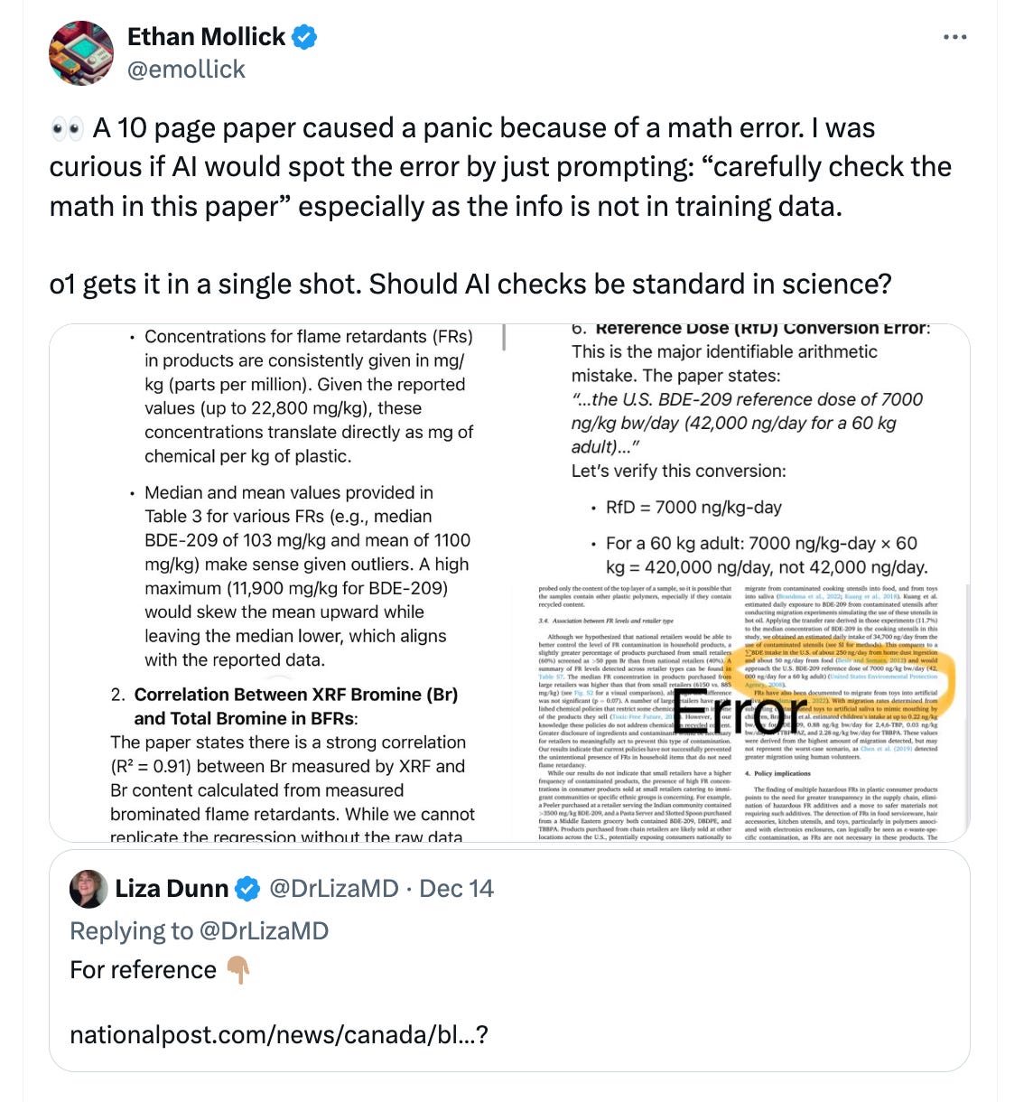 Obviously, we don’t know the actual split-up of has-no-errors and has-errors amongst the 59 papers used here. And 59 is quite a small sample set! But it generally seems like, in at least one domain, o1 was not useful in identifying major issues. In all 3 cases where o1 made a fuss, o1 was either entirely wrong, or identified problems that ended up not being that big of a deal.