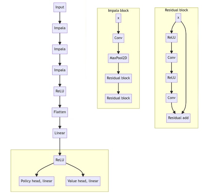 All models use the following deep sequential convolutional architecture (see figure below). The input is a fully observable image of the maze.