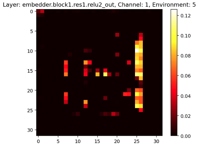 Therefore, if we’d like to gain insight into what runtime information the model’s objective contains, our first step is to detect which activations are part of the objective. Next, we can measure the mutual information between these activations and abstractions in the model’s sensory input dataset, such as object locations. Finally, by comparing the mutual information scores between different abstractions in the input dataset and the activations in the objective, we could identify what information the objective contains/is using to select actions.