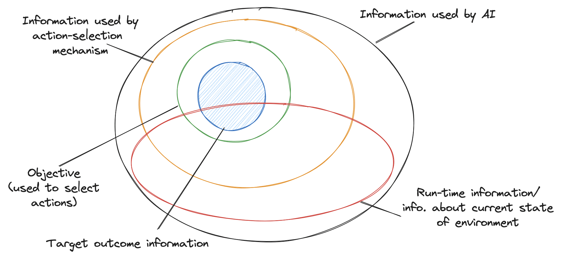 Recall that we started by defining an objective as the criterion that an agent’s internal action-selection mechanism uses to select actions that lead to the target outcome. What can we say about this criterion, given what we can intuit about its structure and function relative to the rest of the agent?