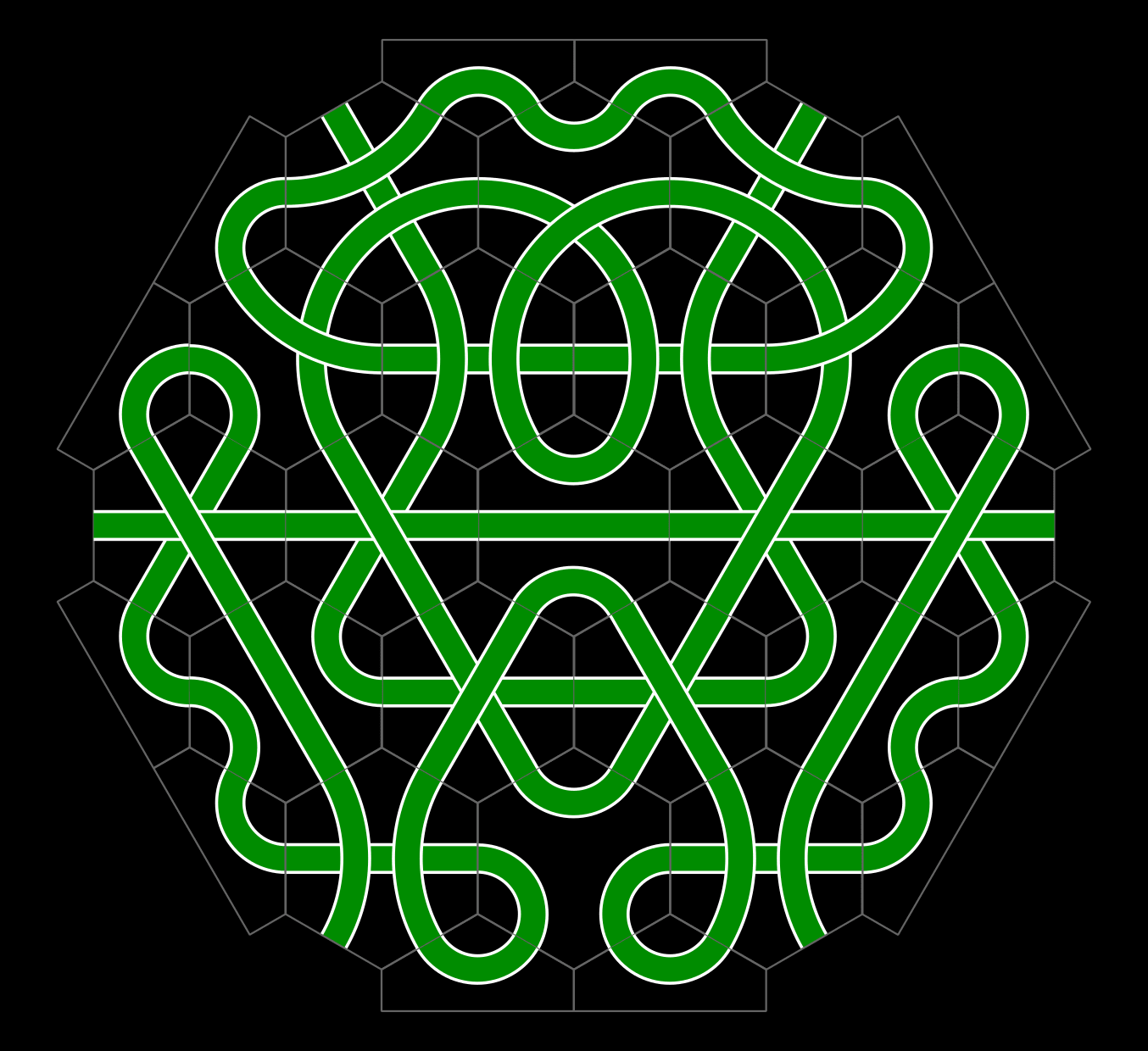 However, everyone knows that its cooler to tile a plane with hexagons than squares. So I cooked up some tiles to make the Hex-grid equivalent of a Celtic Knot.