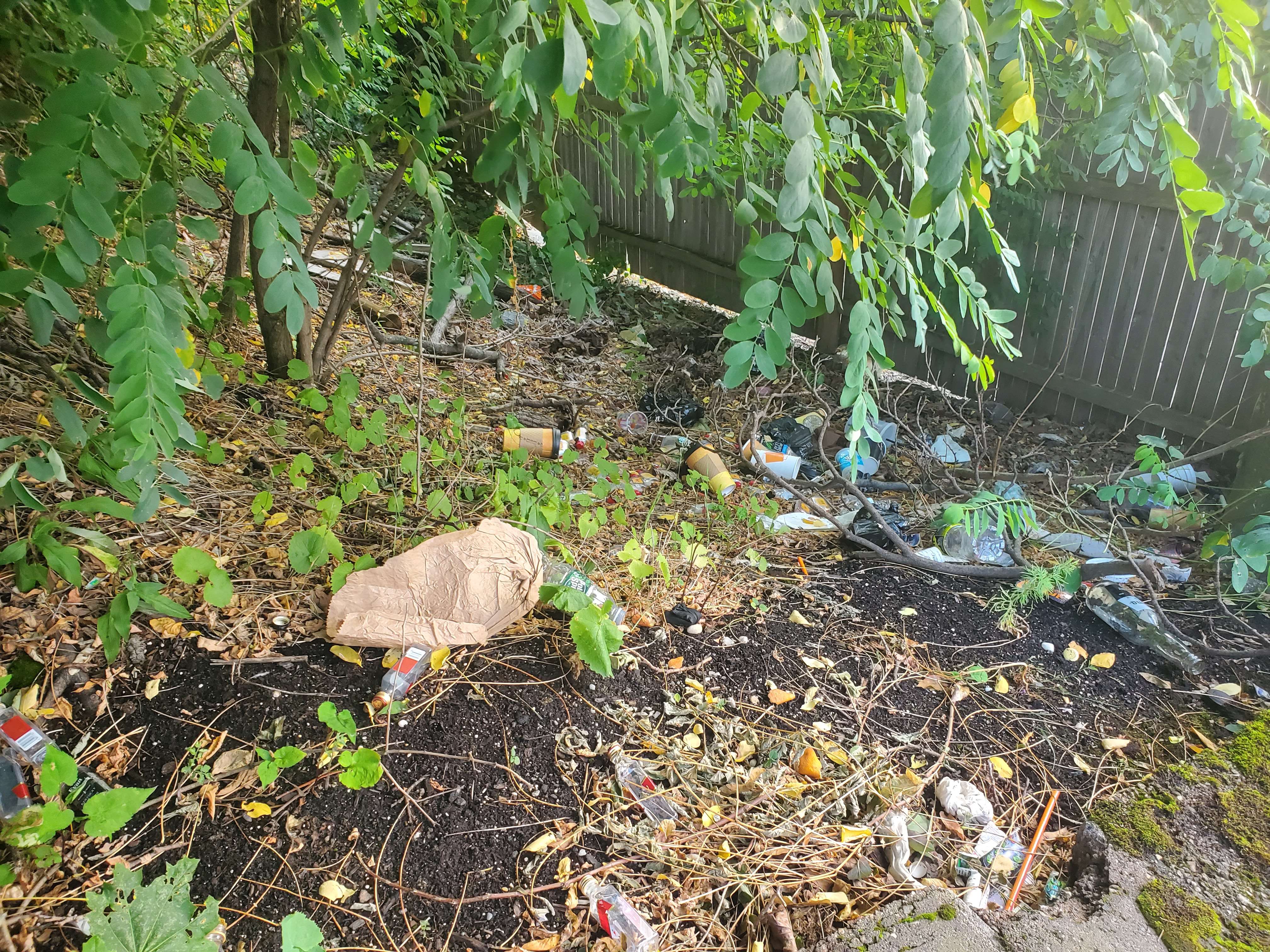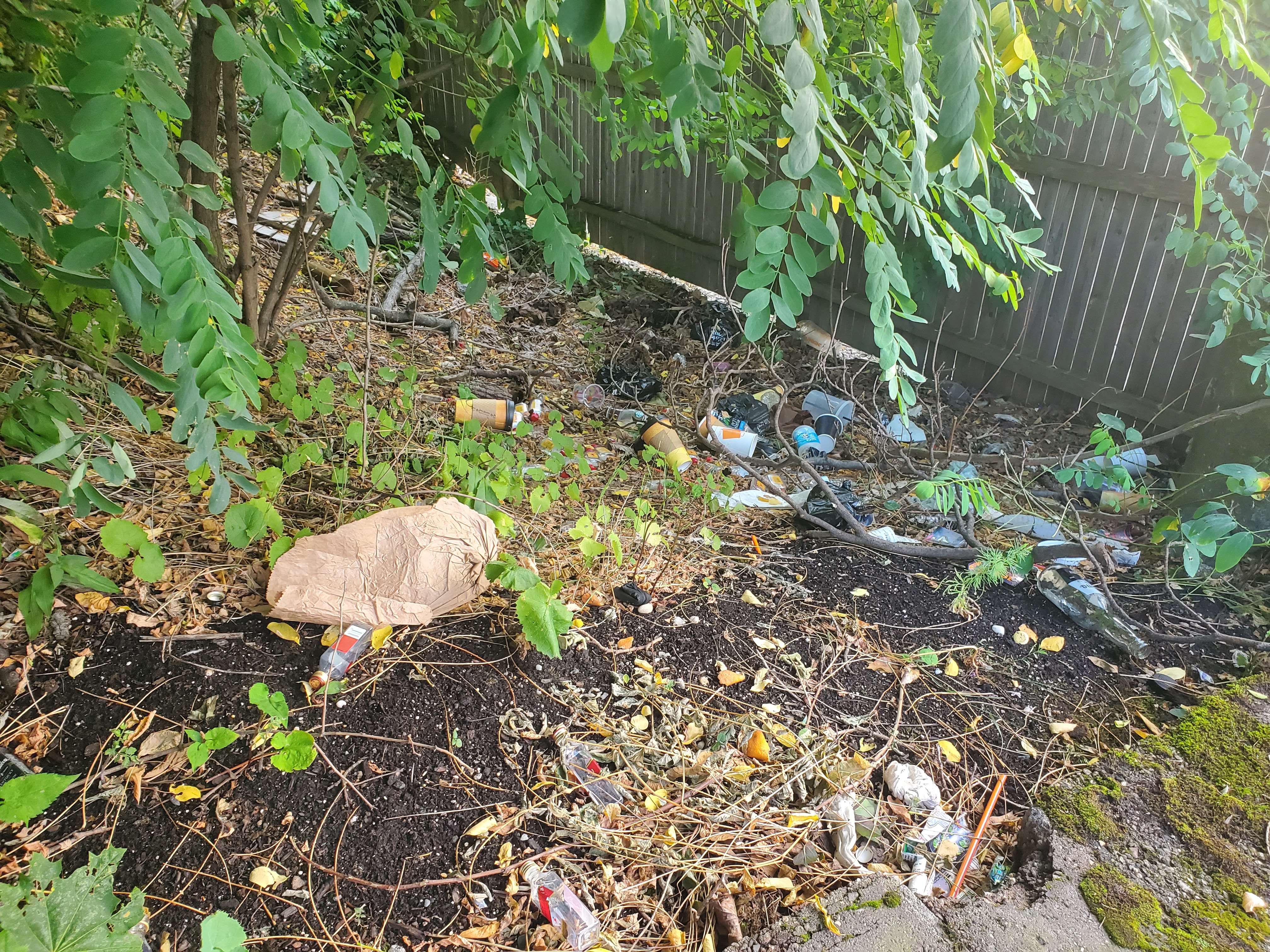 There’s a little ditch just over a low stone wall near my apartment. For whatever reason the ditch is a common place for people to toss litter, especially alcohol containers but also litter in general.