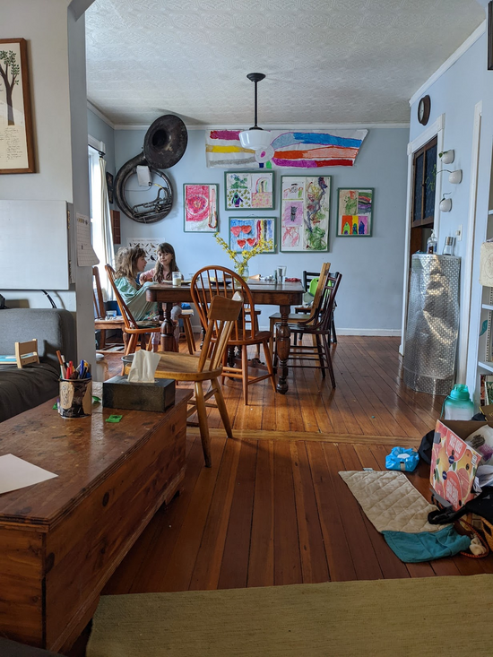 We eat dinner together about 5 nights a week, with each adult cooking once a week. We plan to continue something like that (with one night happening at Ruthie’s house), though the details might change. We share groceries and leftovers, though it’s fine to have individual food and label it as yours. Food has been averaging $200/person/month.