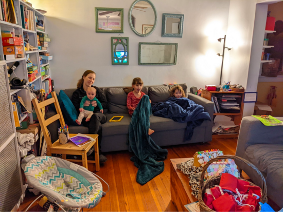 Upstairs apartment: Our family, which is Jeff, Julia, Lily (8), Anna (6), Nora (1). This is where the spare rooms are.